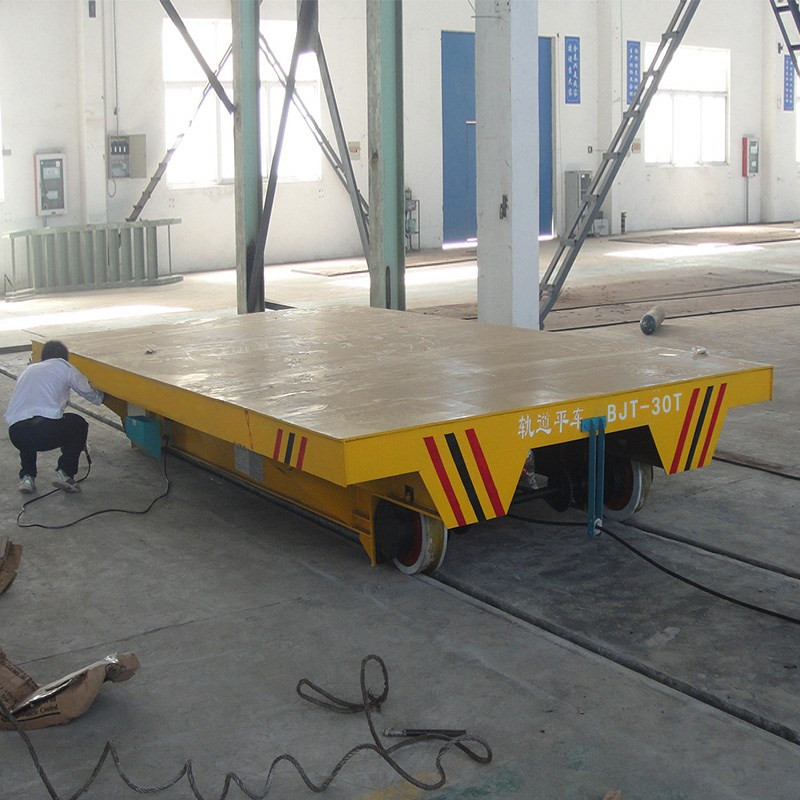 轨道行走平板车是一种轨道厂内短途运输工具车,解决车间厂内跨度间的产品、货物运输搬运。产品结构简易、使用维护方便、承载重量大等优点。产品用途广泛,作为车间内部配合吊车、叉车运输重物过跨之用